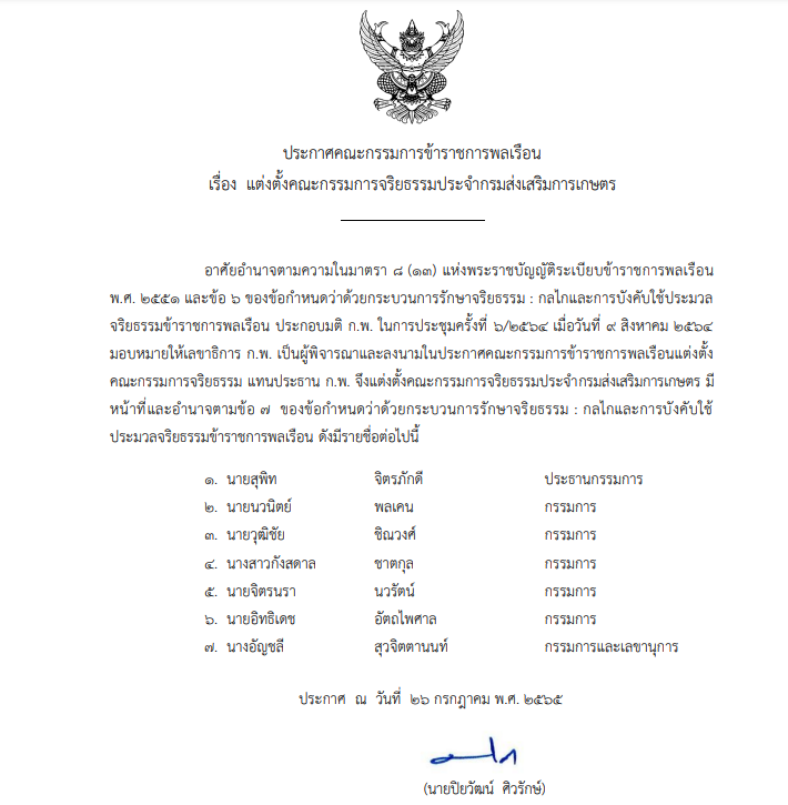 คณะกรรมการจริยธรรมประจำกรมส่งเสริมการเกษตร